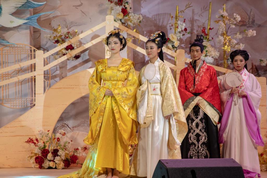 The event was divided into two parts: the stage and the garden. The stage was for the most popular student club performances, such as singing, dancing, fashion walk, playing games, and musical performances. Some of the highlights included a cool street dance performed by飞跃Fēiyuè, a showcase of ancient Chinese fashion by 书生Shūshēng, an acapella rendition of 爱要坦荡荡 ài yào tǎndàng dàng, and an instrumental performance by the quartet Jasmine or 茉莉花 Mòlìhuā.