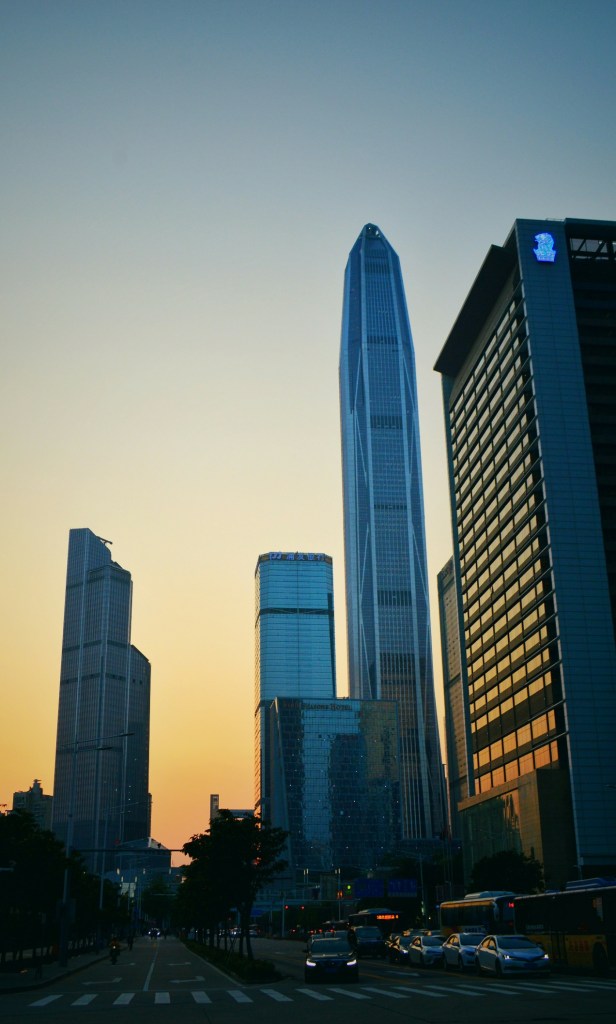 From here, you get an amazing shot of the Shenzhen’s Ping An Finance Center with a subtle sunset glow. If you wait for the sunlight to slowly fade into the night, you will be rewarded by the light play on the buildings located in the area.