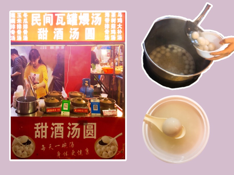 Remember the tangyuan (glutinous rice dumpling) from the Lantern Festival? Now they come with sweet rice wine! This sweet snack is called 甜酒汤圆(Tianjiu Tangyuan). Where can we get it? The tangyuan place is near the Tianfu convenience store, head straight into Pingshan Village from the HIT gate, then turn left once you reach the main street in the village.