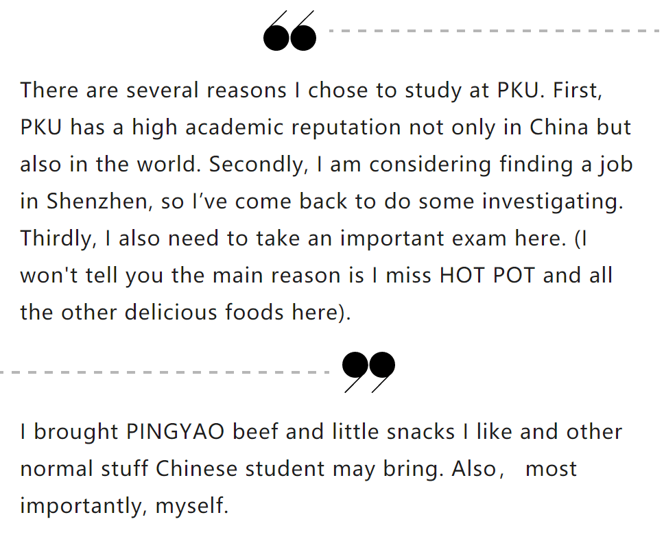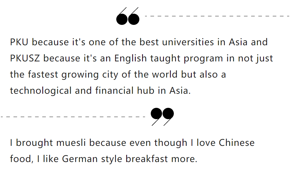 We interviewed our international students a month after they started their studies at Peking University Shenzhen Graduate School.
