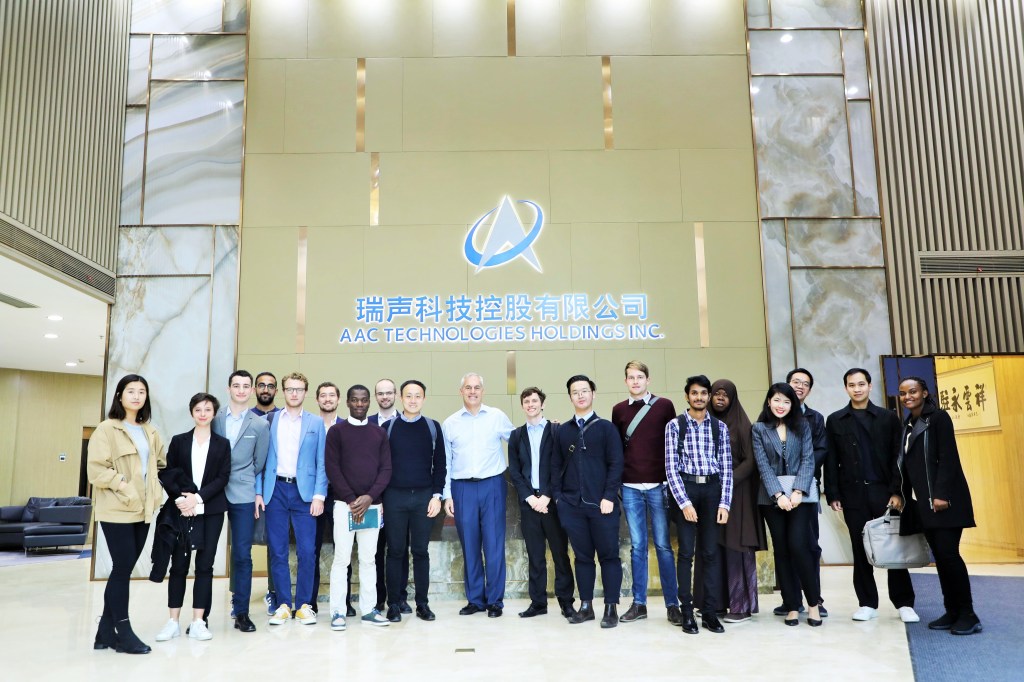 On Wednesday, 04 December, a group of 20 international students from Peking University Shenzhen Graduate School visited AAC Technologies (瑞声科技) at their headquarters in Shenzhen. The students were from the Finance, Management, and Economics MA programs at Peking University HSBC Business School (PHBS), or exchange students. They were welcomed by AAC Technologies Chief Strategy Officer, David Plekenpol, HR Director, James Wan, and Director of Marketing, Daniel Jansson.