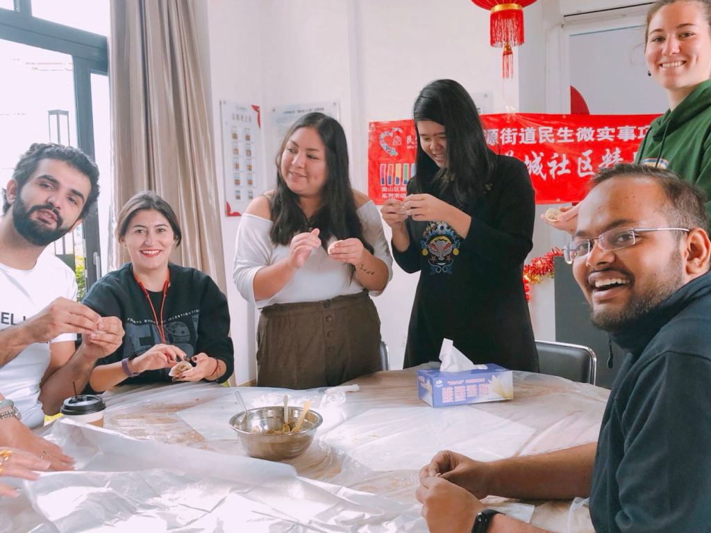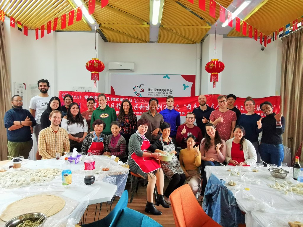 On Sunday December 22, Peking University Shenzhen Graduate School (PKUSZ) international students were invited to take part in a dumpling making event to celebrate Dongzhi Festival (Winter Solstice). The event was held by the University Town Shenzhen Community Government at the Home for International Friends on the PKUSZ campus. Twenty international students had the wonderful opportunity to learn the art of dumpling making from volunteers in the community.
