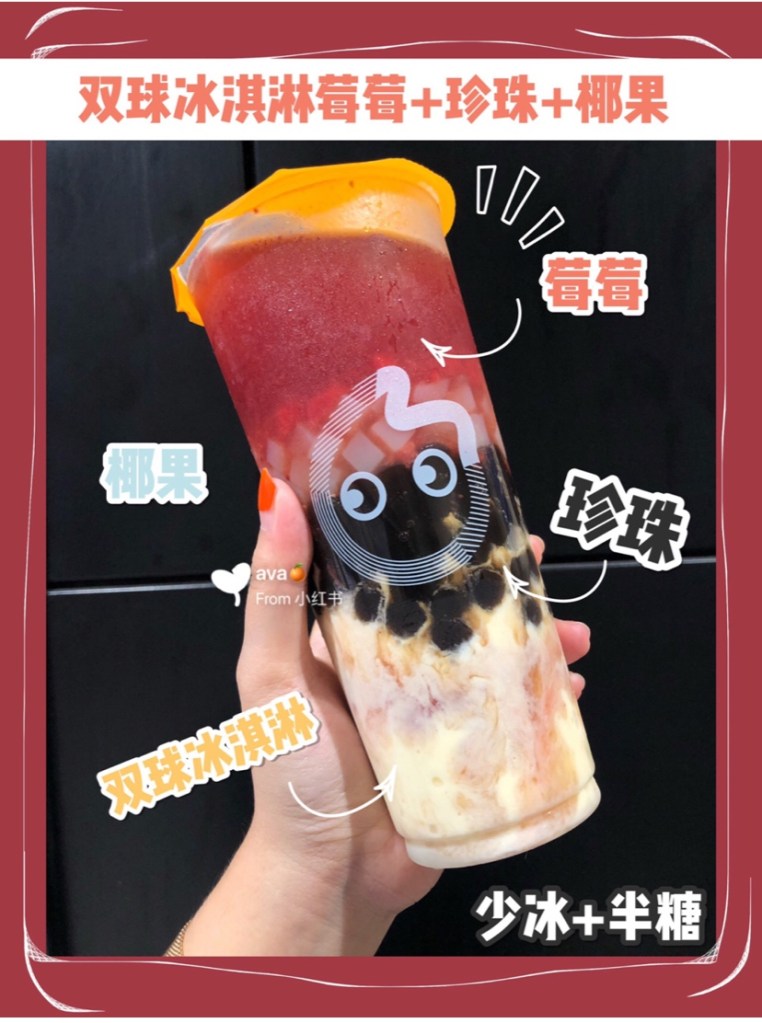 - Strawberry juice + Double ice cream + Coconut: the favor of strawberry and the ice cream mix together. It makes you feel juicy and fresh. When you wanna eat fruits and also wanna try some ice cream, go for it.