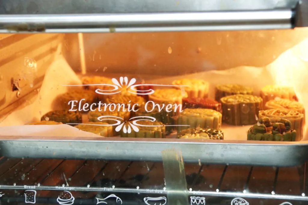 Brush egg yolk liquid on each of the mooncakes and put them in the oven for a few minutes. Wait until the appearance is golden and crisp on the outside.