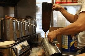Stocking Milk Tea is also known as “Pantyhose Tea” because it is often brewed in a large tea sock that looks like pantyhose. Made from black tea and evaporated milk, it has a smooth and creamy texture, and tastes good!