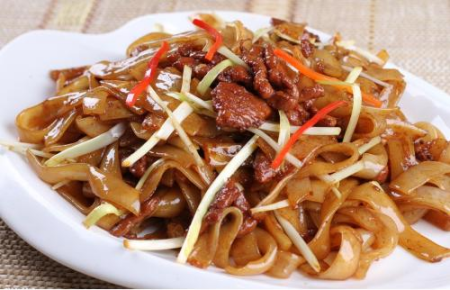 The Beef Chow Fun is a classic Cantonese noodle dish. The flat rice noodles, called “Hor Fun”, is stir-fried with beef and crispy vegetables.