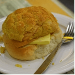 No pineapples in the pineapple bun! The name comes from its cute appearance resembling pineapples. One should have the bun with the slice of butter placed in between. It is much beloved by locals!