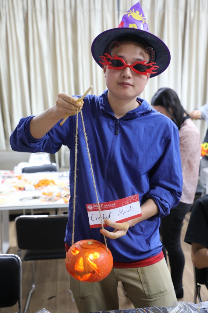 Mei Siyu (from SEE, PKU): “I first thought we would use fake pumpkins, but to my surprise, real fresh pumpkins were prepared for everyone. Everyone took great care in the production and the result was very nice. The pumpkin lamps showed a special vibe in dark environment. In a word, it is a good Halloween activity!”