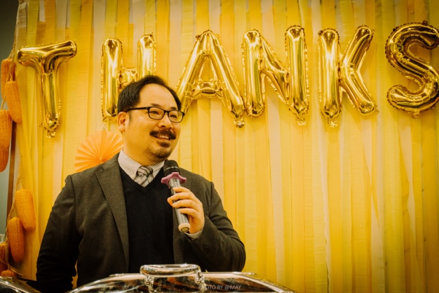 Marco and Gillian chose five lucky winners and each winner then came to the stage to introduce themselves and tell the audience what they were thankful for. The prize was 20rmb of food vouchers to Canteen 2, donated by Happy Meal Time Catering.