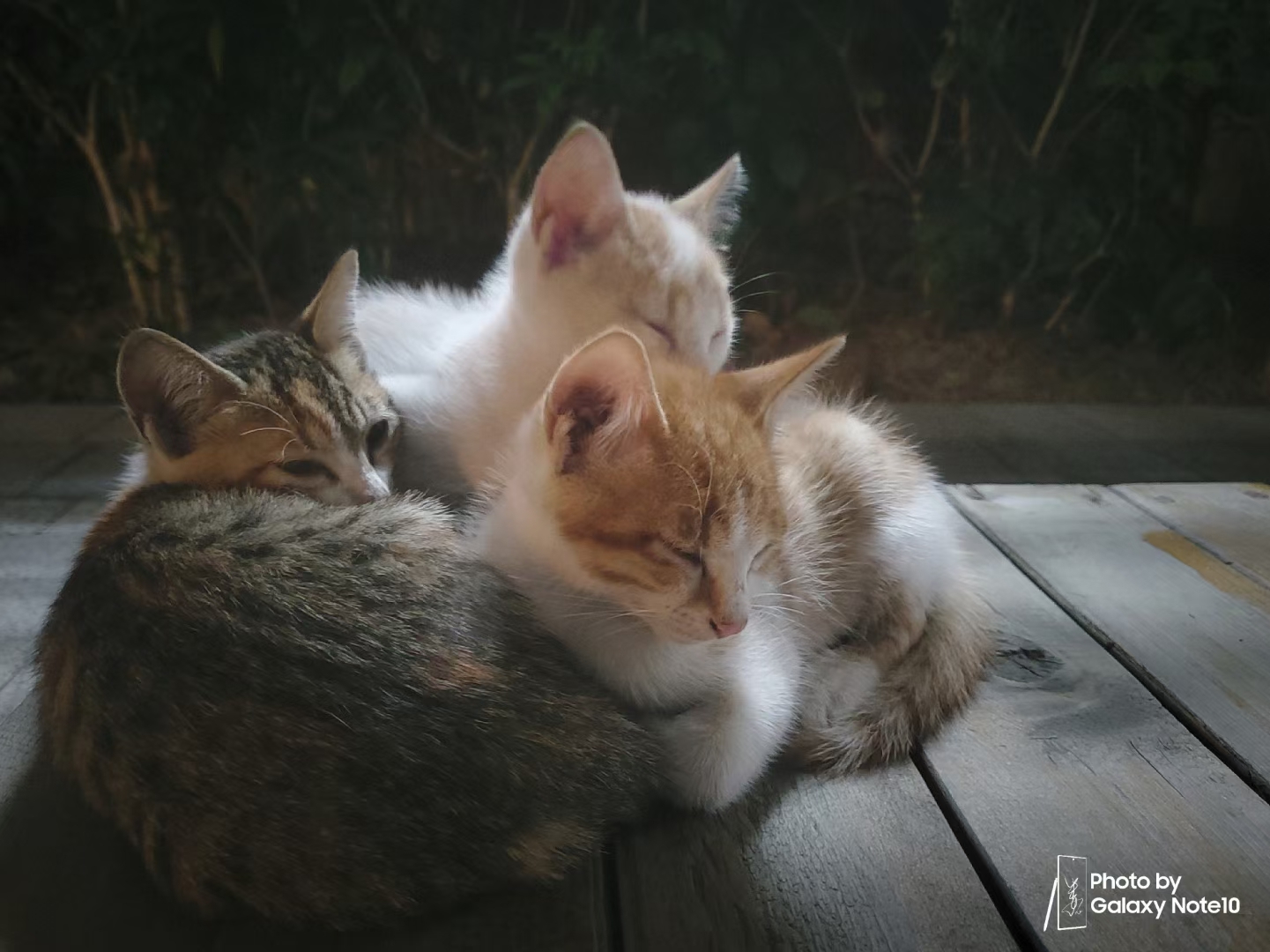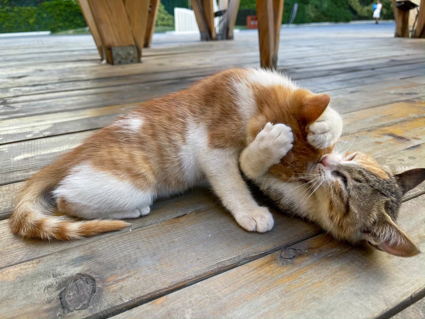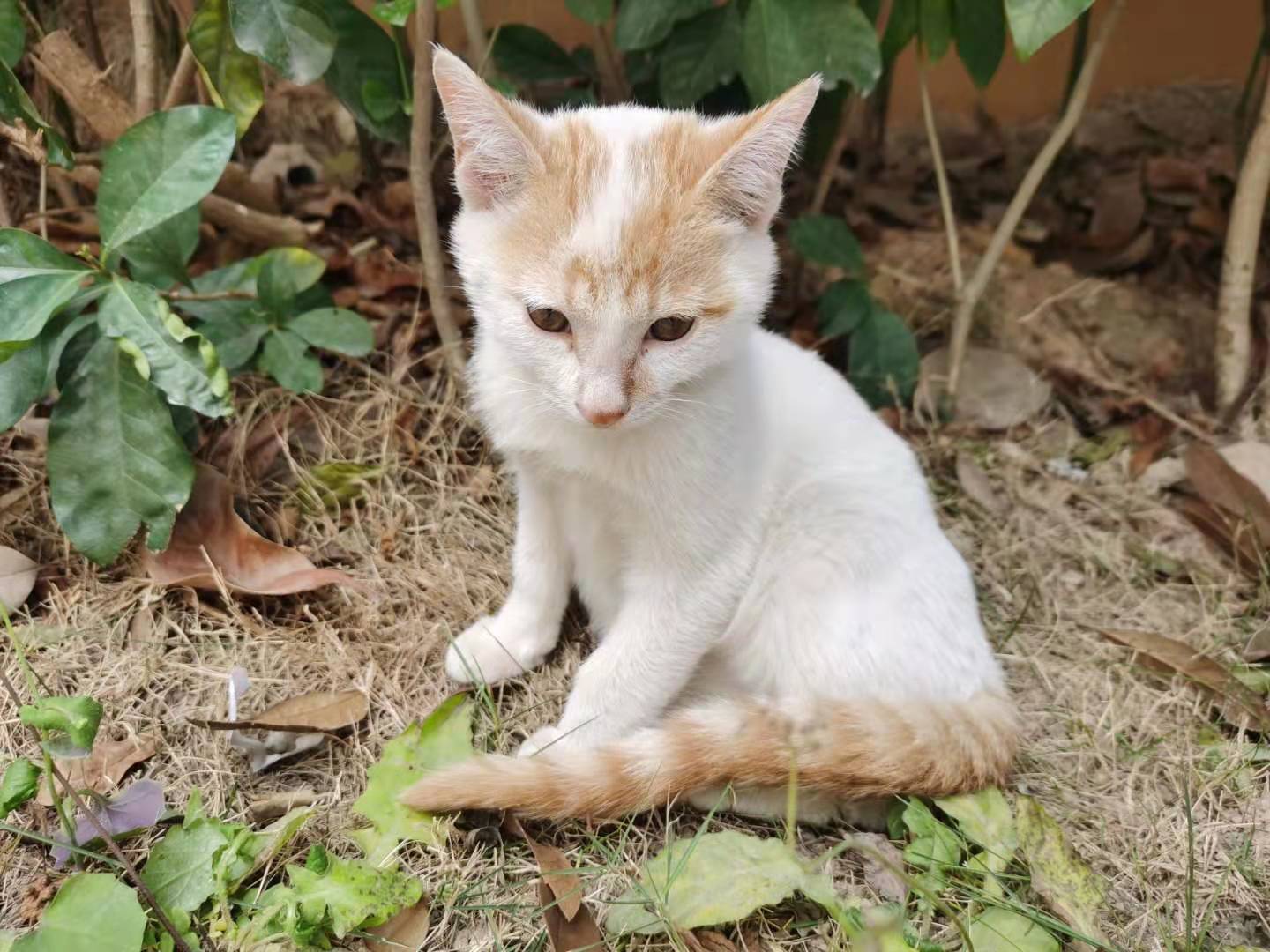 All of these kittens are from Tsinghua University SIGS (click it to check videos!). The little white cat has a sad face. Apart from its tail, ears and forehead, all other places are white. The little orange cat, on the other hand, is yellow except for the white claws and chest, and it usually looks at you with a fierce look on her face.