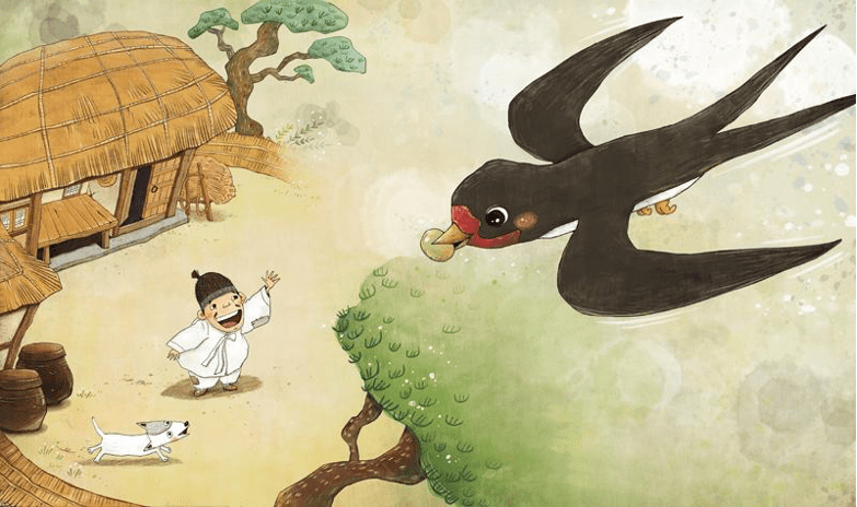 I like the story a lot because it is fun and gives us an essential lesson of Karma. Unlike the summarized version, the original story is quite long. It includes quite a few funny details of how nasty Nolbu is and how Heungbu struggles with poverty, the excitement of opening the gourds, and how Noldbu gets severely punished. It teaches us we should get along with siblings and be friendly to animals. Also, the critical message is that our deeds are being paid off eventually.”